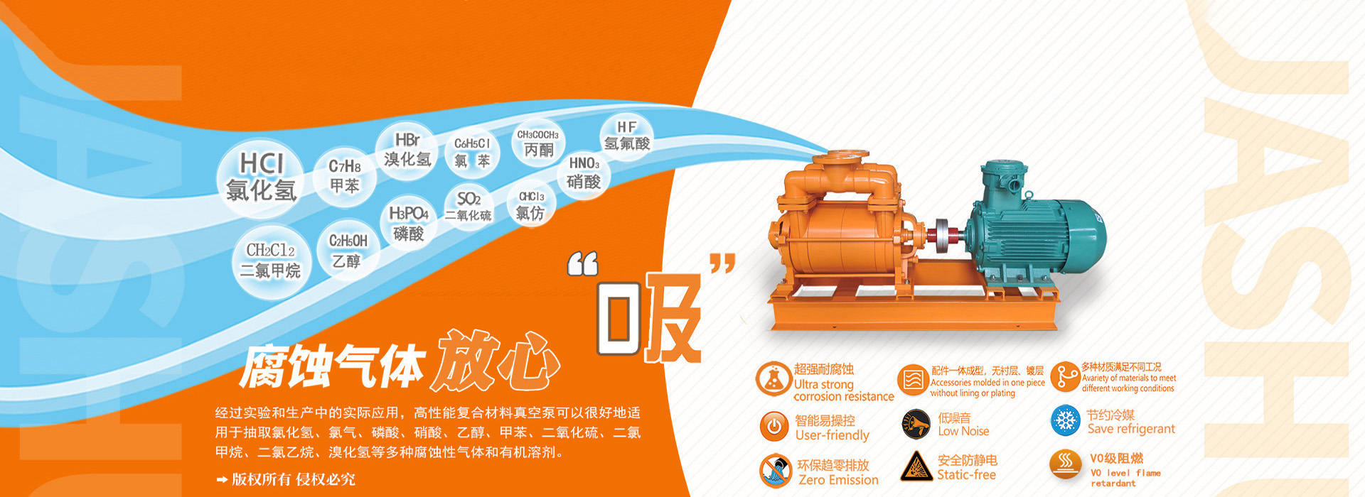 淄博華舜耐腐蝕真空泵有限公司主要生產(chǎn)各種型號和規(guī)格的水噴射泵、耐酸泵、耐酸真空泵等產(chǎn)品,是一家集科研開發(fā)、設(shè)計咨詢、生產(chǎn)、銷售、服務(wù)于一體,利用新型高性能復(fù)合材料,專業(yè)生產(chǎn)耐腐蝕液環(huán)真空泵的國家高新技術(shù)企業(yè), 坐落于“中國泵業(yè)名城”---山東省淄博市博山區(qū),公司通過了ISO9001質(zhì)量體系認(rèn)證。公司獨立研發(fā)的具有多項自主知識產(chǎn)權(quán)的專利產(chǎn)品-耐腐蝕系列水環(huán)式真空泵,通過了省級科技成果鑒定,處于“國際先進(jìn)水平”。 產(chǎn)品過流部件采用三大系列高性能復(fù)合材料(HS-V130、HS-V110、HS-V80)一體成型,耐腐蝕范圍廣、無襯層不脫落、節(jié)能效率高、運行可靠、環(huán)保節(jié)水、 體積小、重量輕、使用壽命長等特點。
